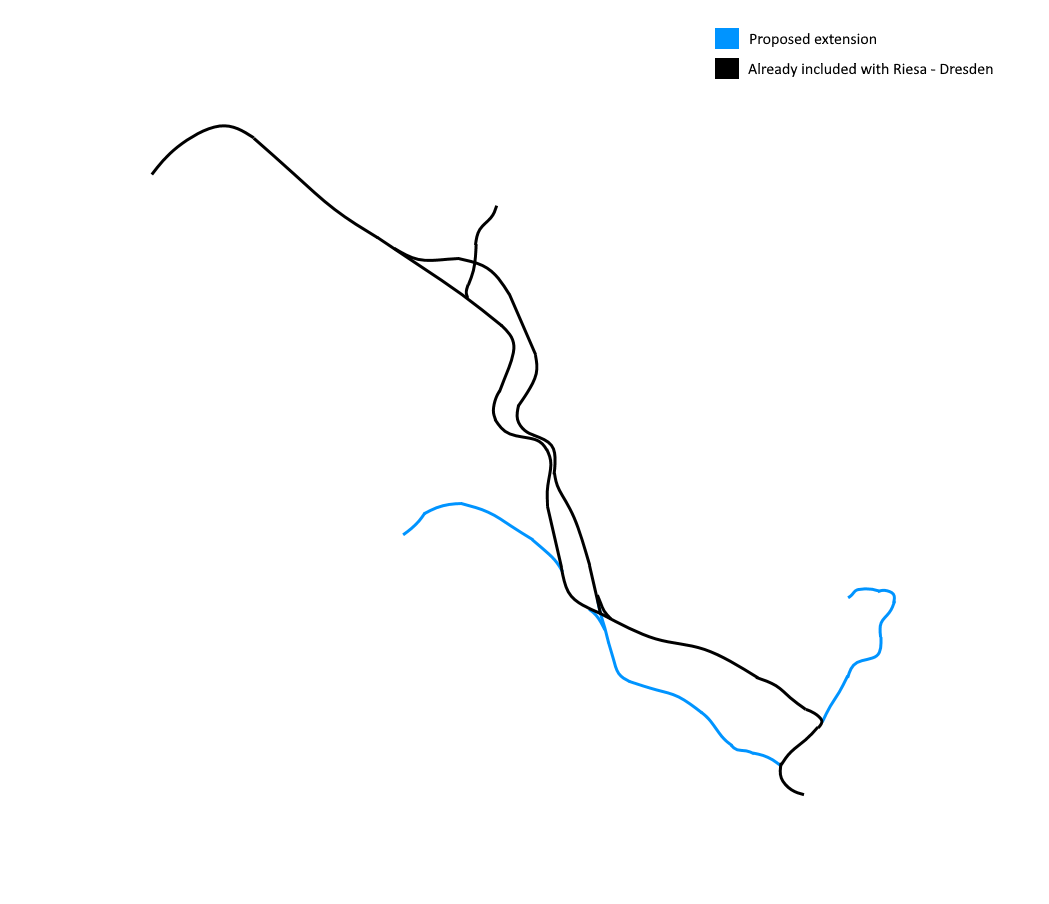 Only two of them are. I made this map as part of my suggestion for an extension to Riesa - Dresden (including the BR 146.0 and maybe the BR 145), consisting of three branches, among which the line over Dresden Friedrichstadt (the middle branch on this map), which wasn't originally announced. The left and right branches are the Meißen and Dresden Flughafen branch respectively, and those two are the branches that were announced at first but are no longer coming.